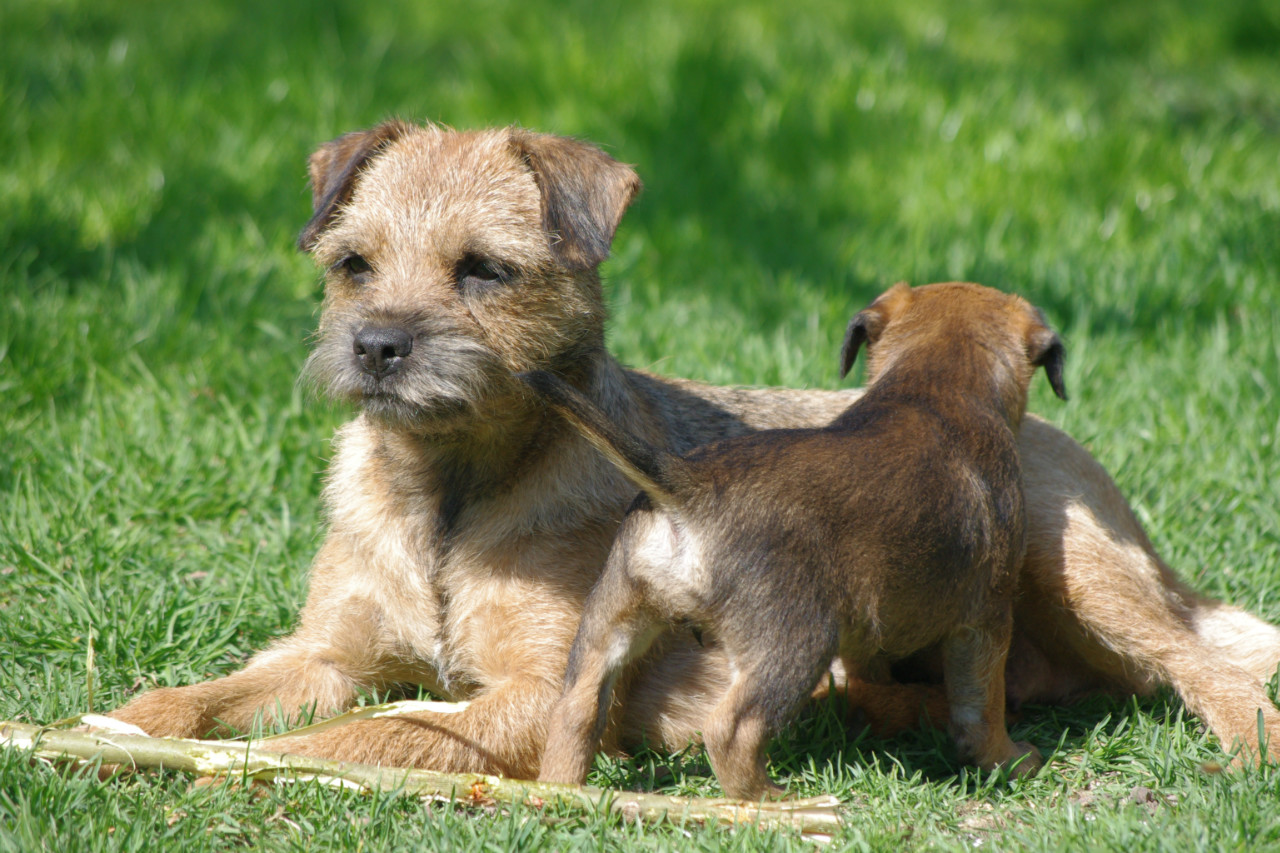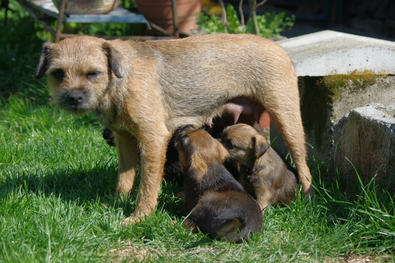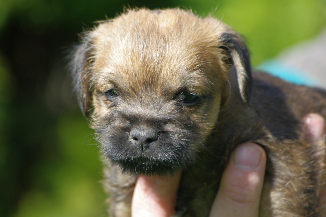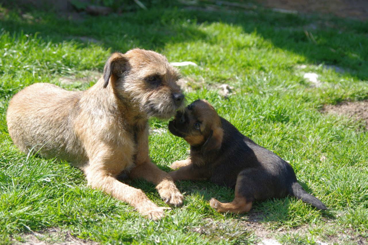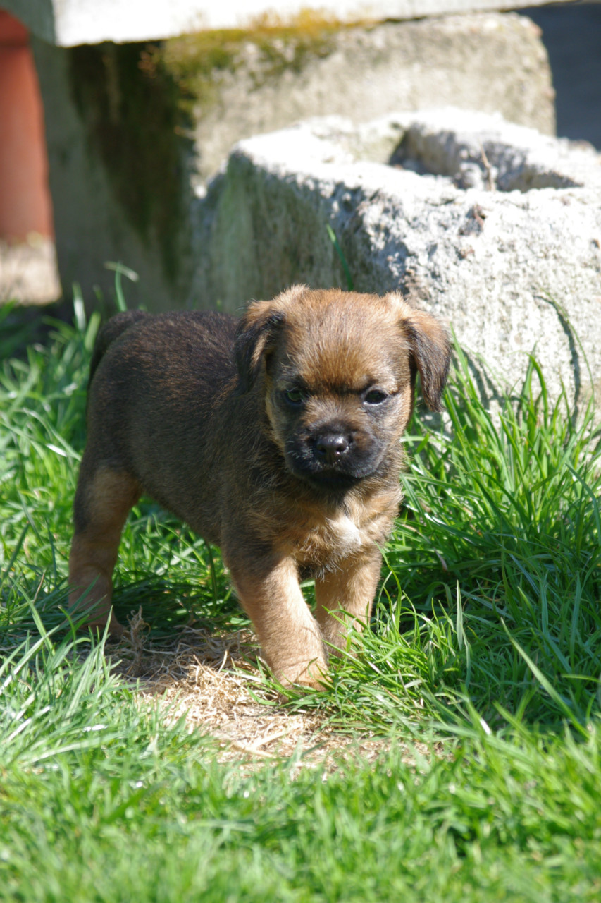 Dnes bylo navzdory předpovědi krásné počasí, tak jsme po obědě vynesli štěňátka na zahradu, ať objevují svět. Řádili jako správní teriéři, vydrželi to nad očekávání dlouho, ale i je to nakonec zmohlo a postupně pousínali na trávě.